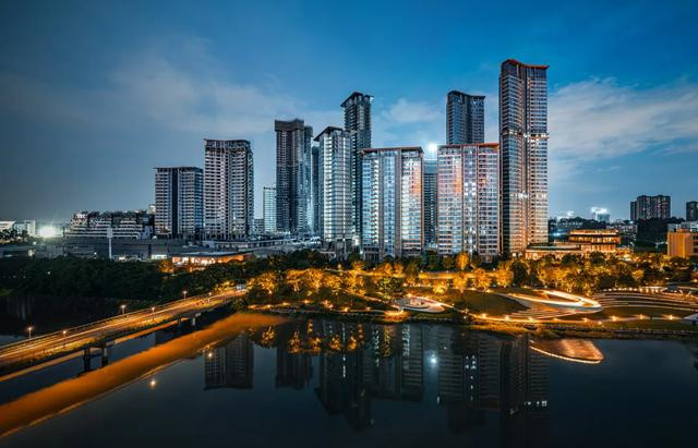 最后则以POD理念缝合城市,通过滨河公园、高线公园、绿廊中轴等三大公园体系,在繁华都市中创造出一片静谧的国际化滨水生活区,也成为CBD的“后花园”,为高净值群体提供了理想居所。