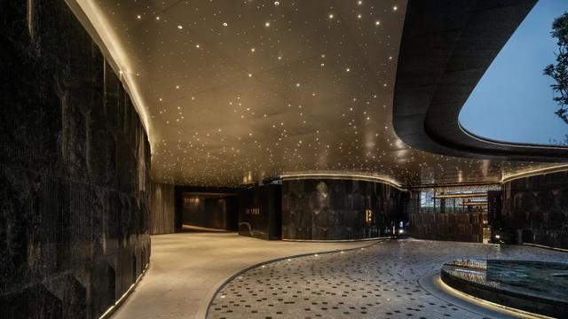 说实话涛哥也看过全国很多顶级作品,但是琶洲南TOD还是让我有大开眼界的感觉。比如这种地上入口处的星空顶在上海未曾见过,将劳斯莱斯级质感拉满。