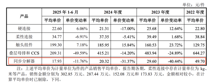 维通利预计,2025年的毛利率将会进一步下降,原因是与报告期内相比,2025年下半年,公司向比亚迪销售的各型号同步分解器降价,预计将导致同步分解器平均单位售价大幅下降,进而影响该产品毛利率预计大幅下降,拖累公司整体毛利率表现。