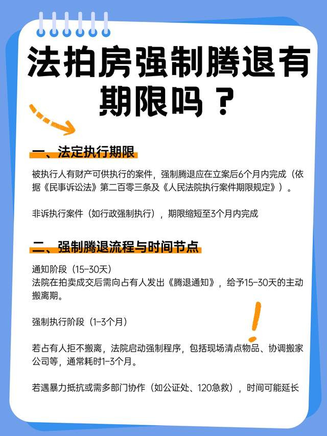 法拍房的交易和强制腾退问题一直是公众关注的焦点。那么,关于法拍房的强制腾退,是否有一个明确的期限呢?